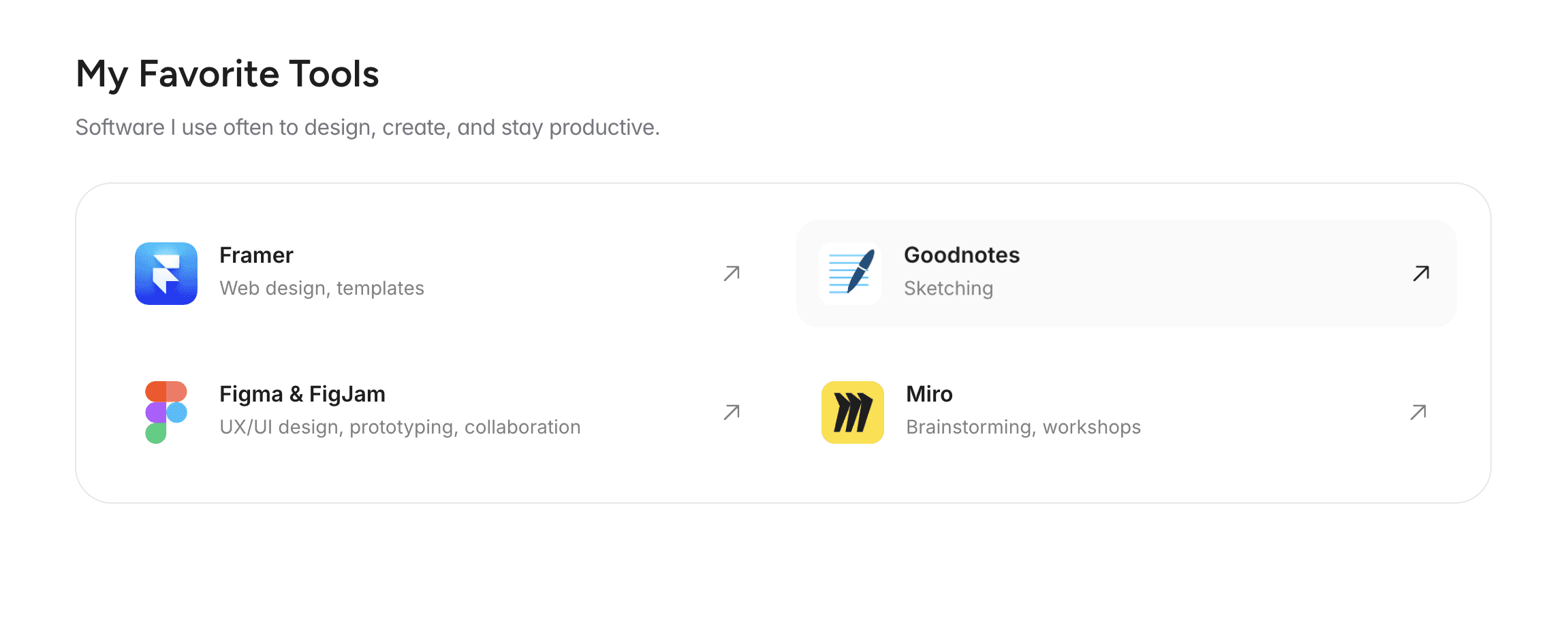 Cards with favorite SW tools